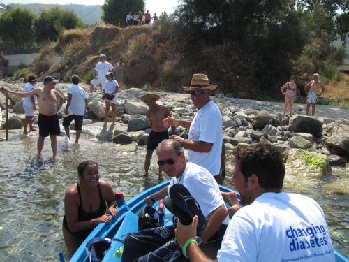 Le immagini raccontano il resto: una Giovanna nervosissima ma sempre sorridente si presenta a Capo Peloro pronta per portare a compimento il suo progetto. Nuota bene, sostiene due controlli "volanti" da parte del dott. Smedile (a 35' e 1h.10'), l'iniezione di due dosi di insulina - e accende l'entusiasmo di tutti noi. Sulle barche c'erano medici, atleti, cronometristi, amici, tutti affascinati dalla determinazione di questa "novellina" e tutti con la maglietta con il motto "Changing Diabetes". Nessun cedimento durante lo sforzo, nè nelle braccia nè nella volontà. Un arrivo in Calabria in perfetta serenità. Non so se la traversata di Giovanna FInocchiaro abbia cambiato davvero il diabete, ma certamente lo ha cambiato per lei e per tutte le persone malate che hanno letto o saputo della sua impresa. Una persona che è stata conquistata allo sport e strappata per sempre alla sedentarietà ha dimostrato che, con le giuste precauzioni e una attenta assistenza, si può davvero cambiare. Giovanna ha dimostrato di avere una marcia in più - e non una in meno - rispetto a tante persone che non hanno questa montagna da scalare quotidianamente. Una delle storie più belle che lo Stretto ci ha riservato in questi ultimi anni, che son felice di aver vissuto direttamente. E mi raccomando, Giovanna, ci vediamo presto in piscina!